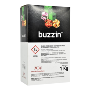 Buzzin 70 WG to herbicyd chwastobójczy w formie granul do sporządzania zawiesiny wodnej, o działaniu doglebowym i nalistnym. Preparat skutecznie zwalcza chwasty dwuliścienne i niektóre jednoliścienne w uprawie ziemniaka. Zawiera metrybuzynę (70%), która hamuje fotosyntezę u chwastów wrażliwych, zapewniając ich efektywne niszczenie od fazy kiełkowania do 2–4 liści. Produkt jest pobierany zarówno przez liście, jak i korzenie, co gwarantuje jego wysoką skuteczność. Buzzin jest łatwy w stosowaniu i zapewnia szerokie spektrum zwalczanych chwastów. Nie zaleca się stosowania na glebach piaszczystych, zbrylonych oraz w temperaturach powyżej 25°C.