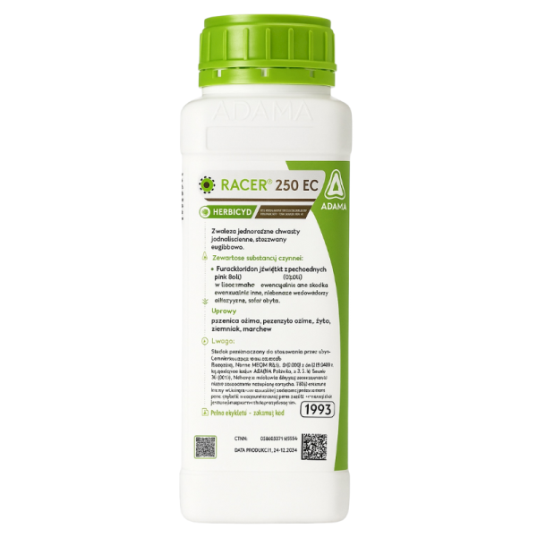 Racer 250 EC to środek chwastobójczy w formie koncentratu do sporządzania emulsji wodnej, stosowany doglebowo, przeznaczony do zwalczania jednorocznych chwastów jednoliściennych i dwuliściennych w zbożach ozimych, ziemniakach oraz w warzywach.