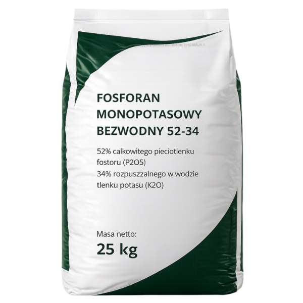 Fosforan monopotasowy (MKP) to wysokoskoncentrowany, całkowicie rozpuszczalny w wodzie nawóz mineralny, przeznaczony do profesjonalnego nawożenia upraw ogrodniczych, rolniczych i sadowniczych. Dzięki unikalnemu połączeniu fosforu i potasu bez zawartości azotu, jest idealnym rozwiązaniem w kluczowych fazach rozwoju roślin, takich jak kwitnienie, owocowanie oraz przygotowanie do spoczynku zimowego.