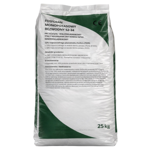 Skład: 52% P₂O₅ (fosfor), 34% K₂O (potas)