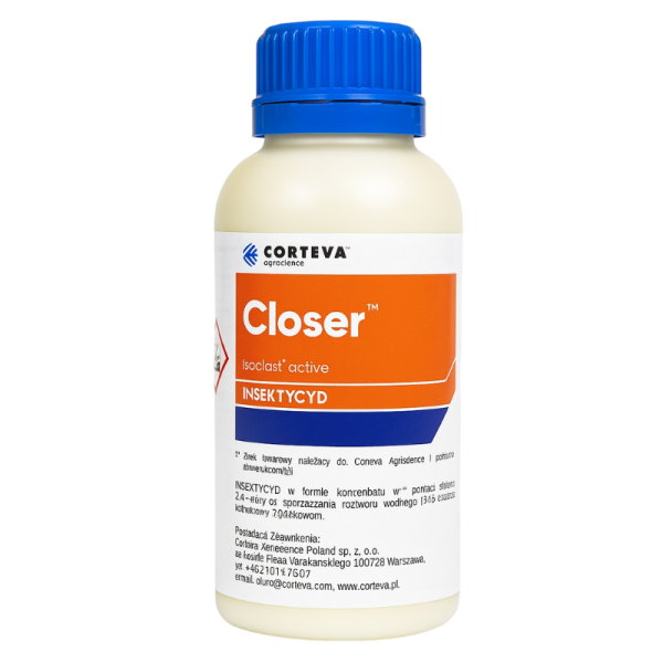 Closer to preparat w formie koncentratu w postaci stężonej zawiesiny do sporządzania roztworu wodnego (SC), o działaniu kontaktowym i żołądkowym. Na roślinie środek działa układowo i translaminarnie.