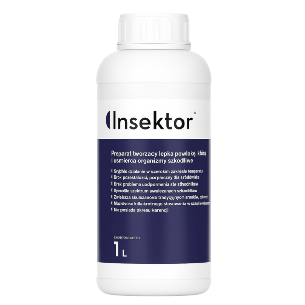 Insektor jest to preparat tworzący lepką powłokę. Stworzona powłoka unieruchamia i uśmierca organizmy szkodliwe. Po aplikacji formuje strukturę na ciele owadów, która je unieruchamia oraz zatyka przetchlinki. Metoda działania to metoda mechaniczna lub inaczej fizyczna. Następuje zablokowanie fizyczne procesów życiowych. Mechanizm działania jest natychmiastowy. Większość szkodników ginie bezpośrednio po zabiegu.