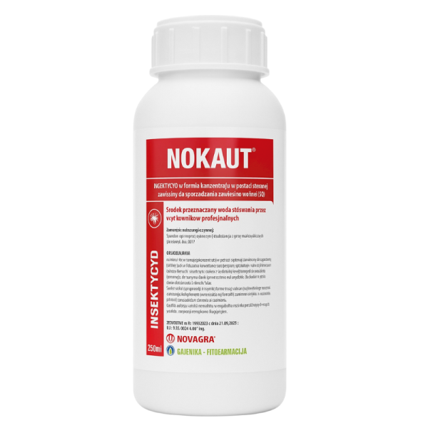 Nokaut to środek owadobójczy, insektycyd z firmy Novagra. Przeznaczony do stosowania w takich uprawach jak: kapusta głowiasta biała uprawiana w polu, brokuł uprawiany w gruncie, kalafior uprawiany w polu, cebula oraz por. Produkt w formie koncentratu w postaci stężonej zawiesiny do sporządzania zawiesiny wodnej (SC), o działaniu kontaktowym i żołądkowym oraz jajobójczym, przeznaczony do zwalczania niektórych szkodników gryzących w roślinach uprawnych. Na roślinie działa powierzchniowo i wgłębnie. Działanie wgłębne dotyczy wyłącznie młodych liści.